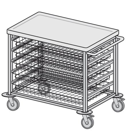 Meble modułowe wg normy DIN. Wózek regałowy – stolik opatrunkowo-zabiegowy z koszami. Wyposażenie wózka: – kosz typ A-03 – 5 szt. L=835 B=500, H=100 mm.