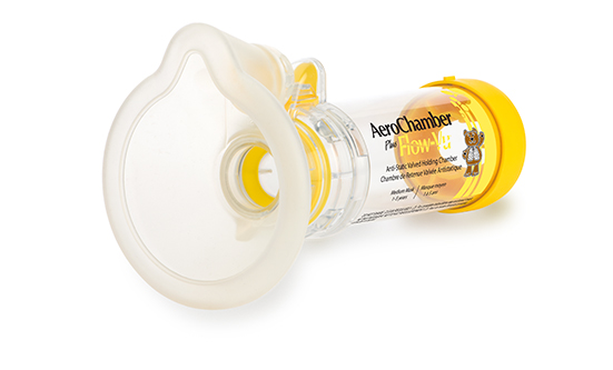 AeroChamber Plus Flow-Vu umożliwia efektywną inhalację przy pomocy komory inhalacyjnej z maską dla dzieci od 1 do 5 roku życia.