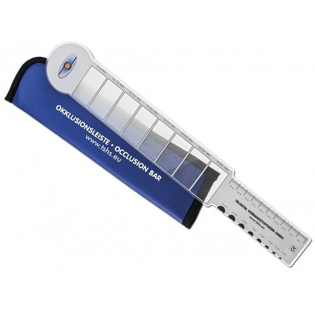 Listwa okluzyjna do prostej oceny gęstości folii okluzyjnej.