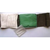 - opatrunek indywidualny „W” (duży) składa się z dwóch tamponów włókninowych chłonnych o wymiarach 15 cm x 12 cm oraz elastycznego, zielonego bandaża tkanego o szerokości 10 cm i długości 4 m