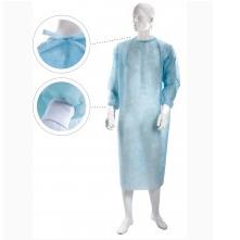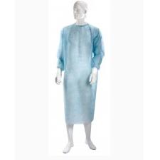Fartuchy wykonane są z włókniny polipropylenowej. Fartuch jest luźny, szeroki, dokładnie zakrywa sylwetkę lekarza. Rękawy zakończone poliestrowym mankietem. Z tyłu przy szyi wiązanie, a z przodu przymocowany trok, który po oderwaniu służy do zawiązywania fartucha w pasie.