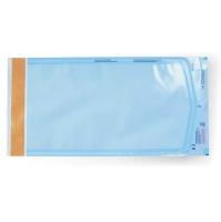 Chemiczne indykatory procesu sterylizacji parą wodną i tlenkiem etylenu nadrukowano na papierze w górnej części torebki poza linią zgrzewu.