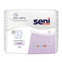 San Seni Maxi to oddychające pieluchy anatomiczne jednorazowego użytku. Idealne dla osób z ciężkim problemem nietrzymania moczu, które potrzebują produktu bardziej chłonnego niż wkładki urologiczne, a także dla osób na wózkach inwalidzkich oraz trwale unieruchomionych . Mocowane za pomocą majtek siatkowych. Mogą być stosowane także w przypadku inkontynencji kałowej.