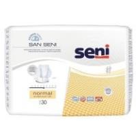 San Seni Normal to oddychające pieluchy anatomiczne jednorazowego użytku. Idealne dla osób ze średnim i ciężkim problemem nietrzymania moczu, które potrzebują produktu bardziej chłonnego niż wkładki urologiczne, a także dla osób na wózkach inwalidzkich oraz trwale unieruchomionych. Mocowane za pomocą majtek siatkowych. Mogą być stosowane także w przypadku inkontynencji kałowej.