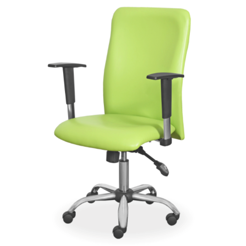 Siedzisko i oparcie tapicerowane tkaniną powlekaną zmywalną, mechanizm: multiblock/synchro - blokowanie w wielu pozycjach, podstawa: chromowana, kółka do powierzchni miękkich, kolumna chromowana, podłokietnik regulowany z częścią chromowaną.