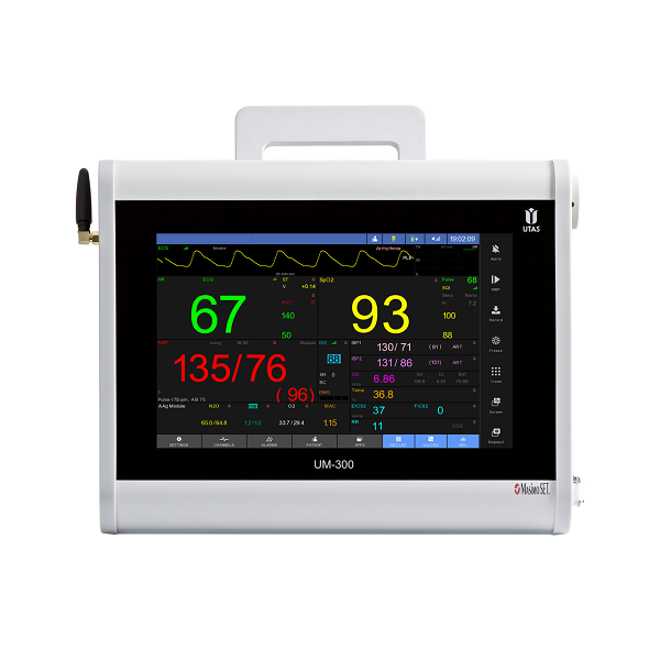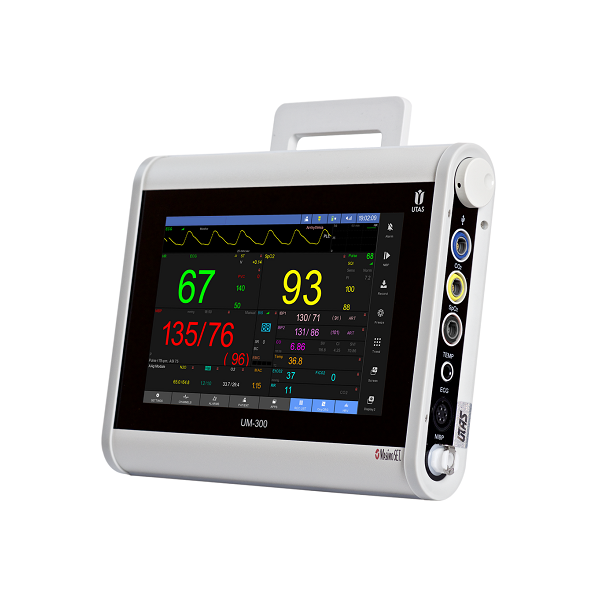 Kardiomonitor, który pełni jednocześnie funkcje transportowe jak i przyłóżkowe.