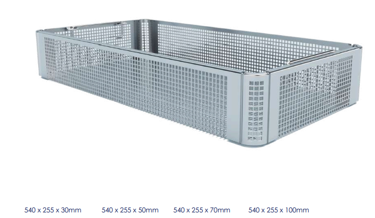 Kosz ze względu na połączenie perforowanych brzegów oraz dna zapewnia idealny obieg pary i dokładną dezynfekcję, dając najbardziej skuteczną metodę czyszczenia i sterylizacji narzędzi chirurgicznych. Kosz jest wielokrotnego użytku oraz mechanicznie odporny, dzięki czemu ma różnorodne zastosowanie: