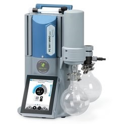 Pompa umożliwiająca precyzyjną kontrolę podciśnienia dzięki kontrolerowi VACUU · SELECT. Kontroler wykrywa wrzenie rozpuszczalnika i automatycznie dostosowuje prędkość silnika pompy. Wyposażona jest w system usuwania skroplonych oparów. Skraplacz oparów spalin umożliwia prawie całkowite odzyskiwanie rozpuszczalników.