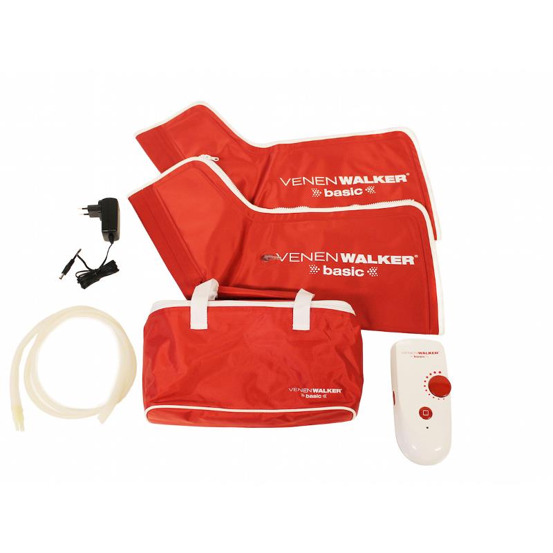 Aparat do masażu uciskowego VenenWalker Basic to urządzenie działające na zasadzie przerywanej (zmiennej) kompresji przeznaczone do masażu limfatycznego. Stymuluje ono ruchy mięśniowe za pomocą wzrastającego i spadającego ciśnienia powietrza tłoczonego przez jednostkę sterującą do komór powietrznych umieszczonych w mankietach. Podczas zabiegu nogi są delikatnie masowane przez napełniane komory. Maksymalne ciśnienie w mankietach to 120 mmHg. Zabieg taki pobudza do pracy układ krwionośny i limfatyczny, poprawia mikrocyrkulację i zdolność przepływu krwi, a co za tym idzie ułatwia pracę serca, dlatego zalecany jest w chorobach układu żylnego, tętniczego i limfatycznego, a także przy uczuciu ciężkich i zmęczonych nóg. Dodatkowo, oprócz leczenia występujących już schorzeń, urządzenie w znacznym stopniu zmniejsza ryzyko powstawania żylaków oraz "pajączków". VenenWalker Basic składa się z jednostki sterującej oraz mankietów, osłaniających podudzia oraz stopy. Jednostka sterująca niewielkich rozmiarów, a także możliwość zasilania bateriami, czyni go aparatem przenośnym, który można zabrać ze sobą w podróż, a także stosować w miejscu, w którym nie ma dostępu do zasilania.