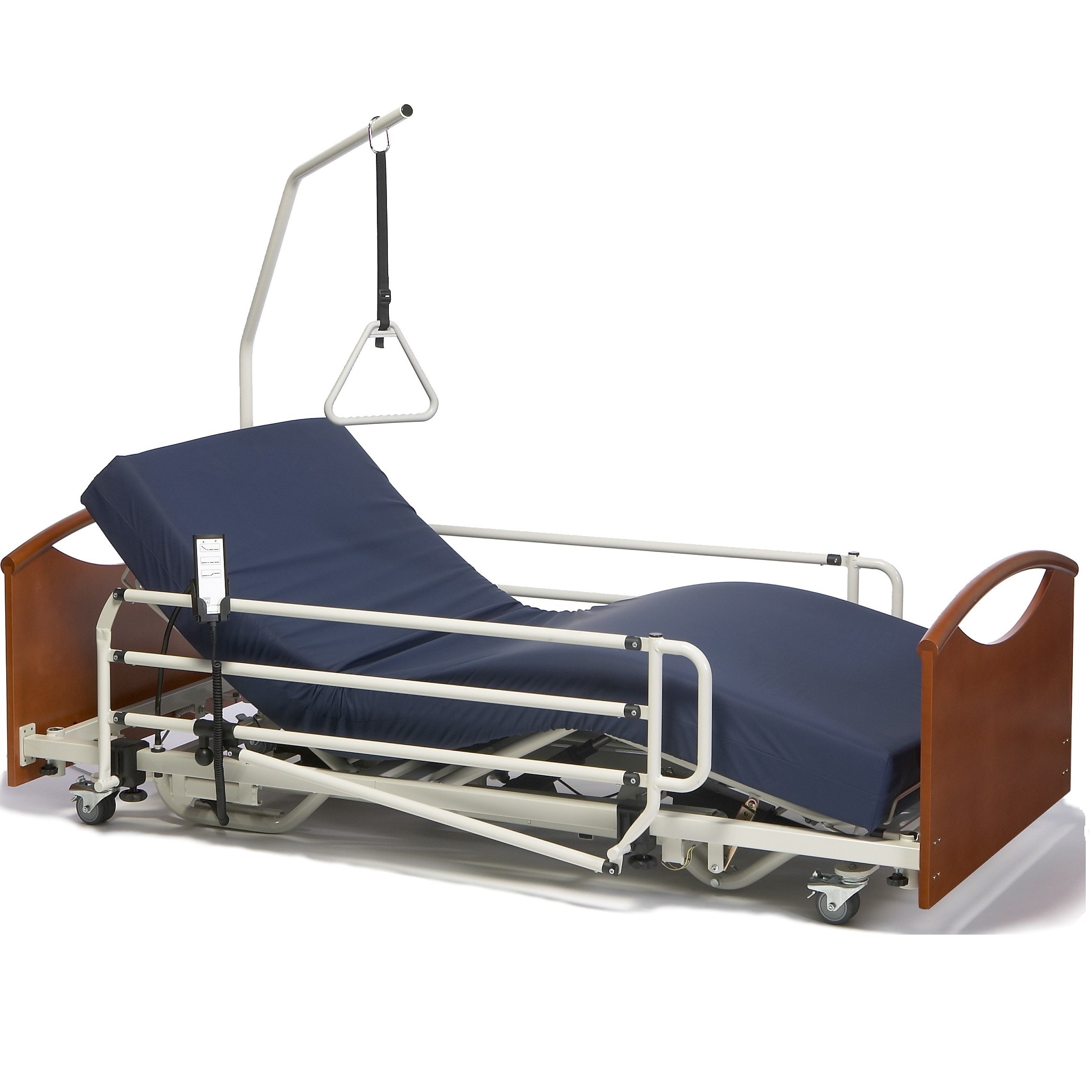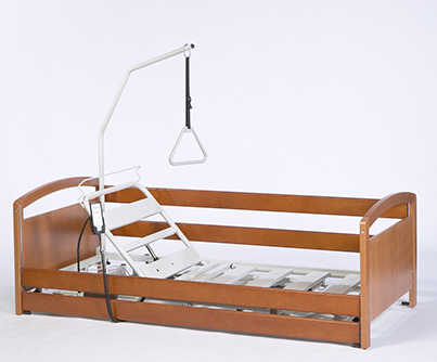 Elektryczne regulacje łóżka obsługiwane są za pomocą pilota. Wśród nich jest możliwość regulacji wysokości całego łóżka oraz pochylenia oparcia i części udowej leża. Regulacja części łydkowej odbywa się manualnie. Łóżko rehabilitacyjne cechuje wysoka jakość wykonania. Panele łóżka wykonane są z drewna bukowego, standardowo barierki boczne mogą być drewniane lub metalowe. Łóżko wyposażone jest w wysięgnik oraz kółeczka transportowe.