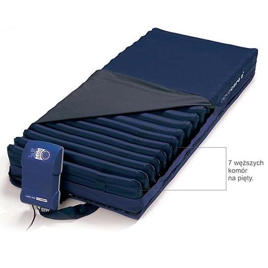 APM 440 Plus - Pompa wyposażona jest w cyfrowo sterowany sensor, który reguluje wewnętrzne ciśnienie materaca, tworząc idealne ciśnienie powierzchniowe. Zastosowanie dwóch membran gwarantuje bezpieczeństwo czego nie ma w pompach standardowych z jedną membraną. Regulacja odbywa się za pomocą panela dotykowego, wyposażonego w wizualnie łatwe do zrozumienia piktogramy. Efektem czego jest szybkie i proste działanie. Tryb zmienny oferuje trzy oddzielne cykle działania. Ponadto, można zastosować tryb statyczny przy leczeniu pacjentów bardzo wrażliwych na ból, oraz tryb opieki, co upraszcza opiekę i mobilność.