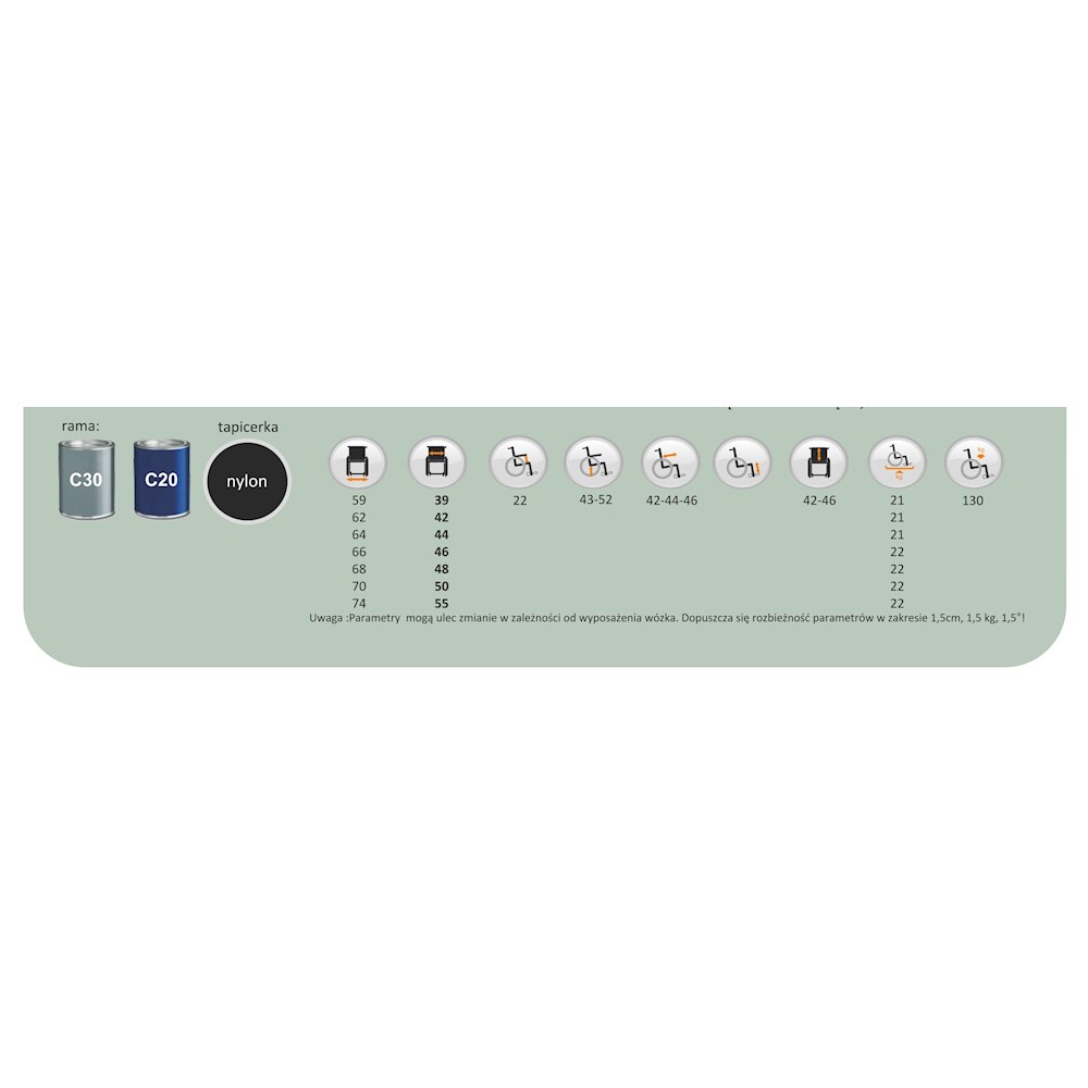 | Szerokość siedziska | 390;420; 440; 460; 480; 500; |