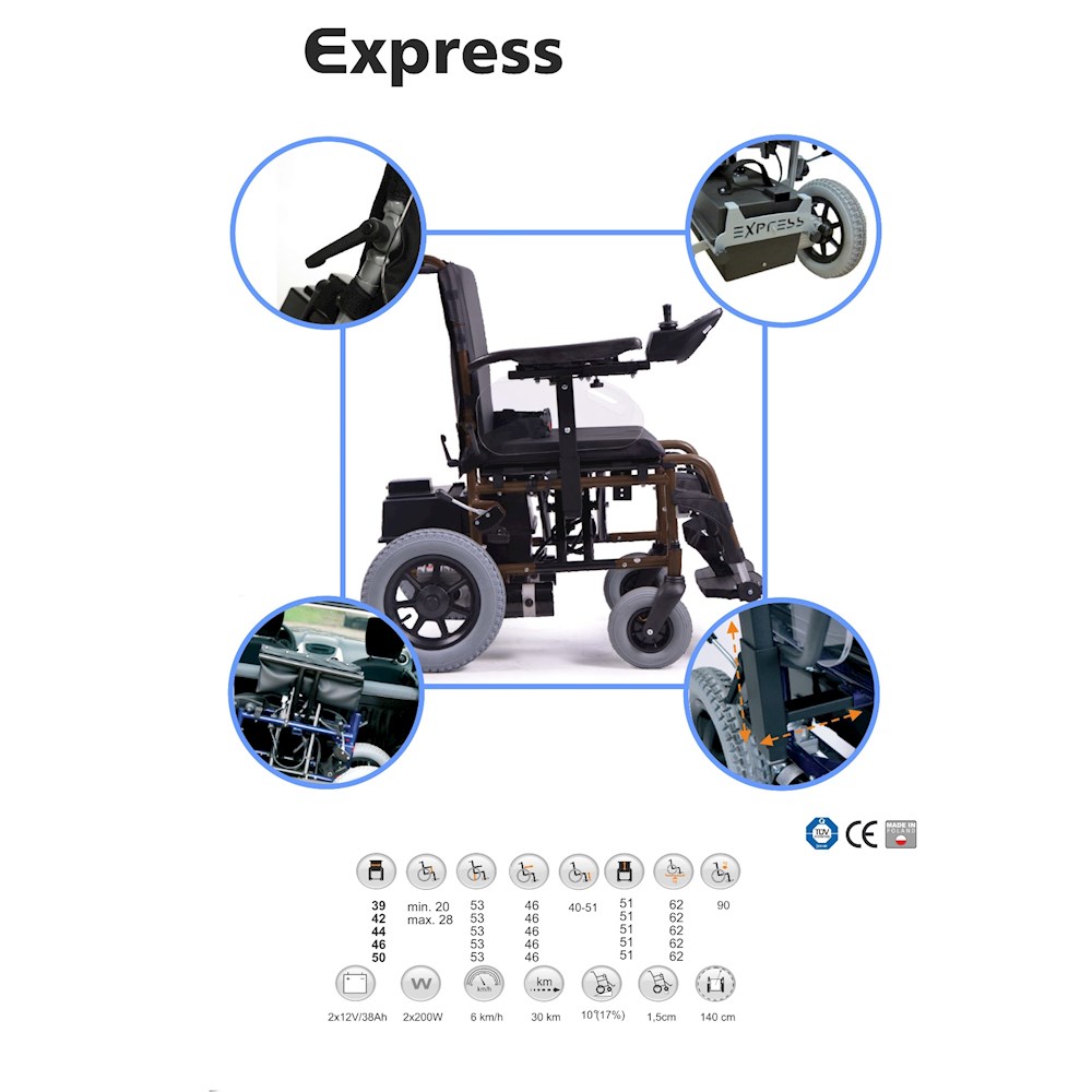 Wózek składany na podwójnym , wzmocnionym krzyżaku. Wyposażony w nowoczesną mikroprocesorową jednostkę sterującą LINX - łatwa, prosta, niezawodna jednostka, która polepsza sterowalność i parametry jezdne. Konstrukcja wózka ułatwia szybki demontaż poszczególnych części i złożenie wózka. Dwie baterie są spakowane do dwóch oddzielnych pojemników, to ułatwia przenoszenie baterii. Wózek można go spakować nawet do małego auta.