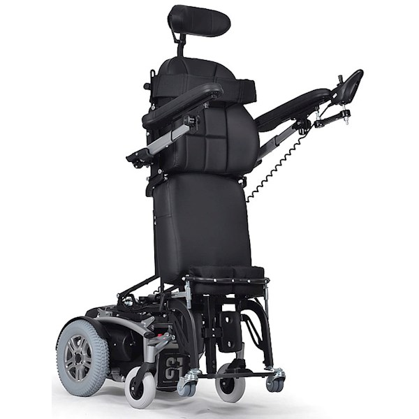Uchwyt dżojstika również posiada oryginalne rozwiązanie konstrukcyjne i umożliwia odchylanie na zewnątrz i do wewnątrz podłokietnika oraz zapamiętywanie wcześniej ustawionej pozycji neutralnej. W standardzie można odchylać oparcie i podnóżki do pozycji leżącej.