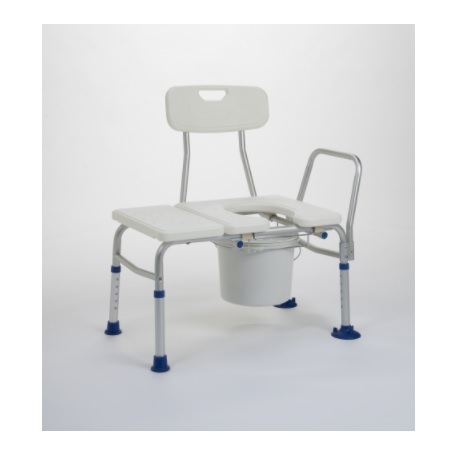 Ławeczka prysznicowa z podłokietnikiem z dodatkowym wycięciem, które pełni dodatkową funkcję toaletową z pojemnikiem sanitarnym. Dzięki niej łatwo utrzymać higienę miejsc intymnych.