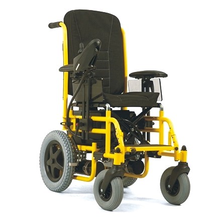 Wózek z napędem elektrycznym pokojowo-terenowy składany dla dzieci. Wyposażony w nowoczesną mikroprocesorową jednostkę sterującą , która ułatwia sterowanie wózkiem przy użyciu minimum siły .