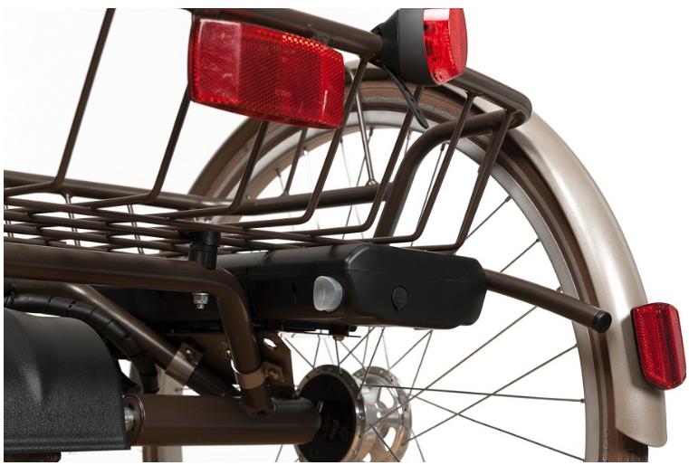 Bateria zamontowana jest z tyłu roweru pod koszem. Jest bardzo lekka i demontowalna. Co pozwala na ładowanie baterii w domu.