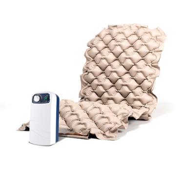 Materac MAT X1 Materac zmiennociśnieniowy - bąbelkowy do I stopnia zagrożenia odleżynami w skali czterostopniowej EPUAP. MAT X1 podstawowy materac zmienno-ciśnieniowy . Skuteczny przy profilaktyce i leczeniu odleżyn do I stopnia . Zaleca się stosowanie materaca razem z dodatkowym materacem gąbkowym tzw. podkładem , dla lepszej stabilizacji materac wyposażony jest w kołnierz , który zawinięty jest na podkładzie. Materac: