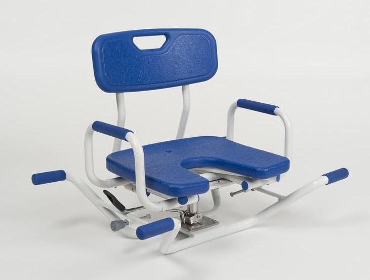 Obracana ławeczka kąpielowa nawannowa. Pozwala na kąpiel osobom, którym wchodzenie i wychodzenie zwanny oraz siadanie i wstawanie sprawia dużą trudność. Podłokietniki i podparcie pleców gwarantuje odpowiedniebezpieczeństwo.