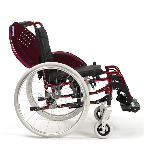 Wózek inwalidzki V200 GO wykonany został z aluminium. Niezwykła konstrukcja pozwala na łatwe poruszanie się. Zamiast podłokietnika zastosowano aluminiowy ochraniacz, co zdecydowanie ułatwia korzystanie z wózka. Jego konstrukcja jest konfigurowalna, co pozwala na zmianę, bądź rozbudowanie wózka o opcje dodatkowe spełniające bieżące wymagania użytkownika. Dodatkowo w każdej chwili istnieje możliwość zmiany takich parametrów jak: wysokość siedziska od podłoża, głębokość siedziska, kąt nachylenia siedziska.