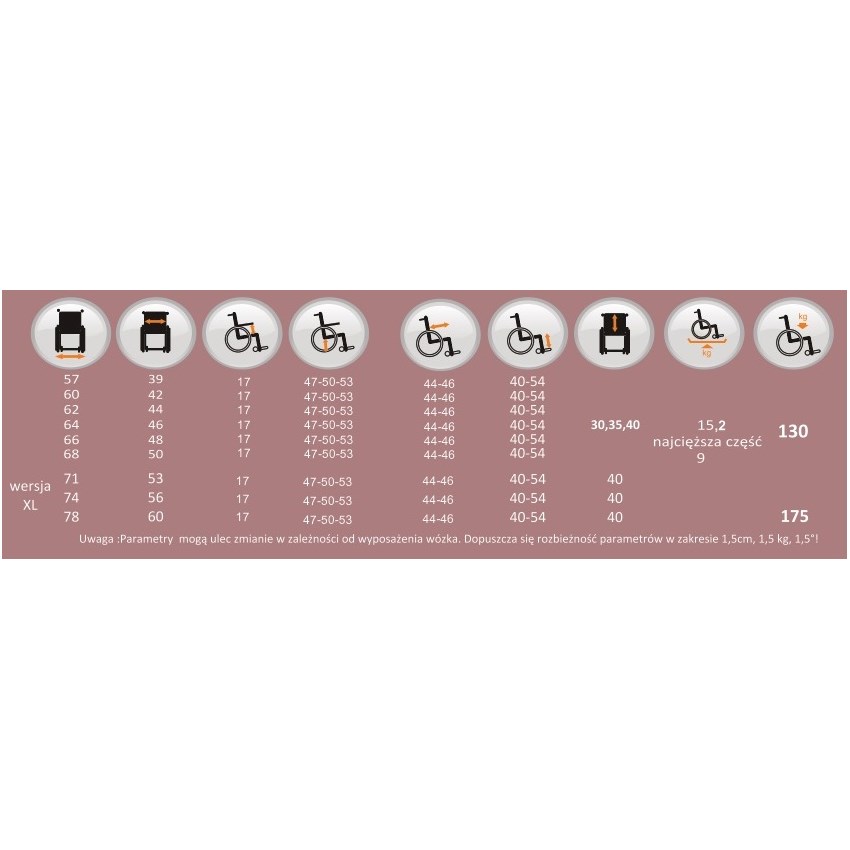 | Szerokość siedziska | 390;420; 440; 460; 480; 500; |