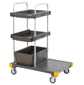 Oryginalny system szuflad Equipe umożliwia wsuwanie i napełnianie pojemników, w których można umieszczać również wiadra i inne pojemniki. W razie potrzeby, wiadra można wieszać także w górnej części wózka. Wszystkie wymiary do siebie pasują, a poszczególne elementy dają się łatwo wyjmować. Dzięki systemowi szuflad maksymalnie wykorzystano dostępną przestrzeń, uzyskując do 50 % więcej miejsca niż w przypadku tradycyjnych rozwiązań. Pojemniki można łatwo i szybko wkładać i zdejmować.