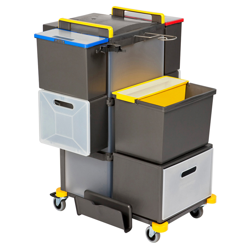 Shopster pozwala zmieścić obok siebie wszystkie systemy do mycia podłóg, mając do dyspozycji tylko powierzchnię wózka podwójnego.