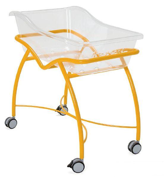 Wyjmowana wanienka wykonana z pleksi w zestawie z wózkiem. Wózek wykonany z okrągłych rur stalowych, malowanych proszkowo farbą epoksydową i suszony w tunelu termicznym w temperaturze 200°C. Wózek posiada uchwyt wanienki do ułożenia jej w poziomie oraz poprzeczne żebra do regulacji wielu pozycji. Przezroczysta wanienka wykonana jest z pleksi o grubości 5 mm, w dnie znajdują się otwory ułatwiające cyrkulację powietrza. Podstawa wyposażona w 4 podwójne koła (O 75mm), dwa z hamulcem. Wyprodukowano zgodnie z dyrektywą 93/42 dot. urządzeń medycznych.