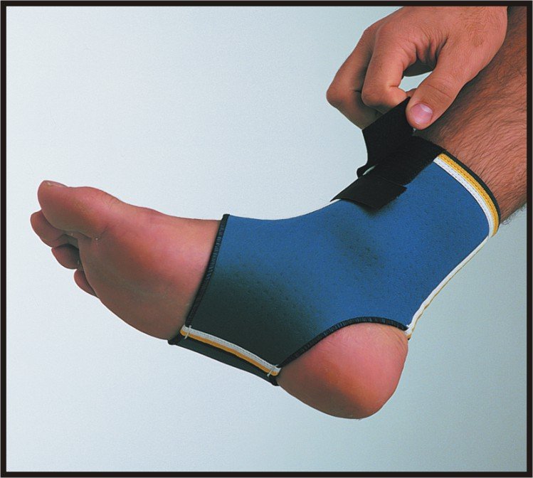 Stabilizator stawu skokowego-R2060. Z otwartą piętą i palcami. Zapinany na rzepy. Wyposażony w grzbietowy i podeszwowy pas stabilizujący. Wykonany z przepuszczającego powietrze neoprenu. Dostępny w rozmiarach (wg obwodu stawu skokowego).