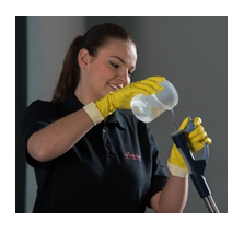 SprayPro jest w pełni profesjonalnym, gotowym do użycia, systemem czyszczenia podłóg zawierającym wszystko, czego potrzebujesz do mopowania bez używania wiadra. Wystarczy jedynie napełnić kij i masz już to, co niezbędne do czyszczenia zabrudzonych posadzek i klatek schodowych, a wszystko w jednym, łatwym w obsłudze urządzeniu.