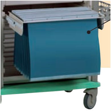 Uchwyt teleskopowy na zdjęcia RTG montowany na prowadnicach (6 poziomów). Pojemność 35 skoroszytów o grubości 20 mm.