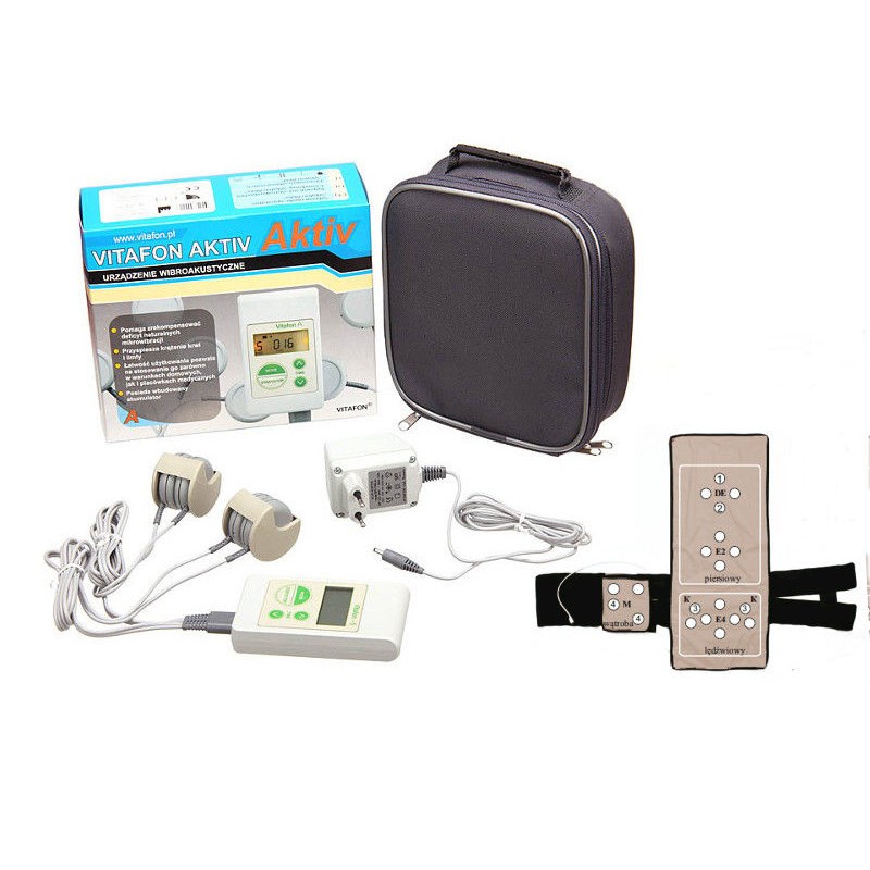 Vitafon Active to urządzenie przeznaczone do wykonywania terapii wibroakustycznej. Vitafon Active jest wyposażony w wyświetlacz cyfrowy i timer do odliczania czasu wykonywanego zabiegu. Urządzenie posiada wbudowany akumulator czyli nie musimy być w zasięgu gniazdka z prądem oraz dwie pary przetworników co daje nam możliwość wykonywania zabiegu na dwie okolice jednocześnie.