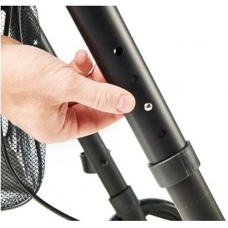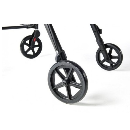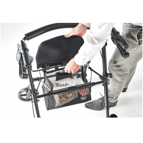 Kompaktowy rollator jest lekki i łatwy w użyciu. Ma miękkie wyściełane siedzisko i oparcie, ergonomicznie ukształtowane uchwyty dla lepszej przyczepności i dodatkowego komfortu oraz system hamujący i hamulec ręczny. Posiada również torbę pod siedzeniem dla bezpiecznego przechowywania rzeczy, które łatwo można tam włożyć i wyjąć. Posiada specjalne kółka dla lepszej przyczepności i nie pozostawia za sobą czarnych śladów.