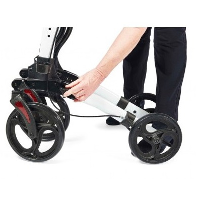 Rollator jest ergonomicznie zaprojektowany dla zapewnienia jak największej wygody użytkownika. Czarno-biały design jest nowoczesny i jednocześnie innowacyjny. Posiada oparcie dla pleców, torbę do przechowywania, torbę na zakupy i uchwyt na laski. Ma regulowaną wysokość i jest łatwy do przechowywania i przenoszenia.