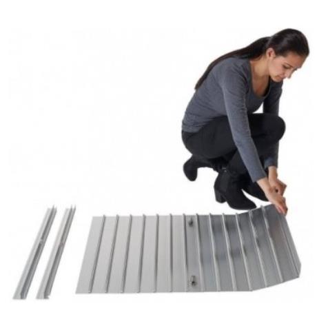 Rampa może być zwinięta w celu łatwego transportu i przechowywania, dzięki czemu jest to szybkie i proste rozwiązanie dla wózków inwalidzkich, gdy potrzebują pokonać na przykład stopnie, chodniki lub progi.
