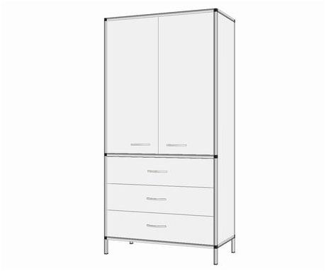 Szafa dwudrzwiowa z koszami. Dowolny wymiar w zakresie 700-1200x250-600x1500-2000. Każdy mebel wykonany w tej technologii posiada szkielet - z anodowanych profili aluminiowych. Konstrukcja jest wyjątkowo mocna a zarazem lekka. Stosuje się cała gamę profili o różnych przekrojach, które dobierane są w zależności od przeznaczenia mebli, ich wielkości i wytrzymałości. Zaokrąglone kształty profili tworzących krawędzie - chronią użytkowników przed urazami. Ich powierzchnie pokryte są kolorową okleiną z PCV. Szkielet tworzący konstrukcję może być wypełniany płytami laminowanymi, szkłem lub blachą. Wszystkie pozostałe komponenty mebli tj. zawiasy, prowadnice szuflad, zamki - to konstrukcje wyjątkowo funkcjonalne, wykonane w najwyższym standardzie jakości. Meble są wyjątkowo estetyczne i przystosowane do intensywnej eksploatacji.