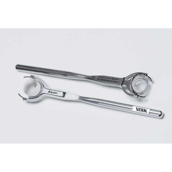 * Oburęczny uchwyt pozwala wszystkim chirurgom na używanie pojedynczej soczewki gonioskopowej.