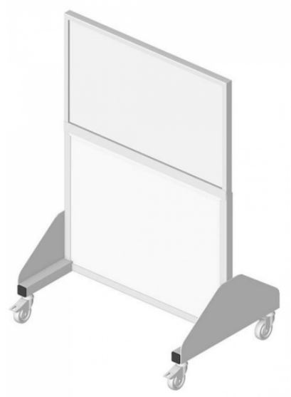 Ekran ten wykonany jest z ołowiu o grubości 2 mm pokrytego białymi syntetycznymi płytami. Stalowa rama wykończona jest farbą w kolorzeperłowej bieli. Ekran dostępny jest w wersji z lub bez szyby ołowianej w jegogórnej części.