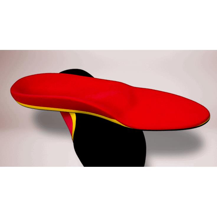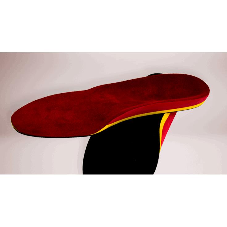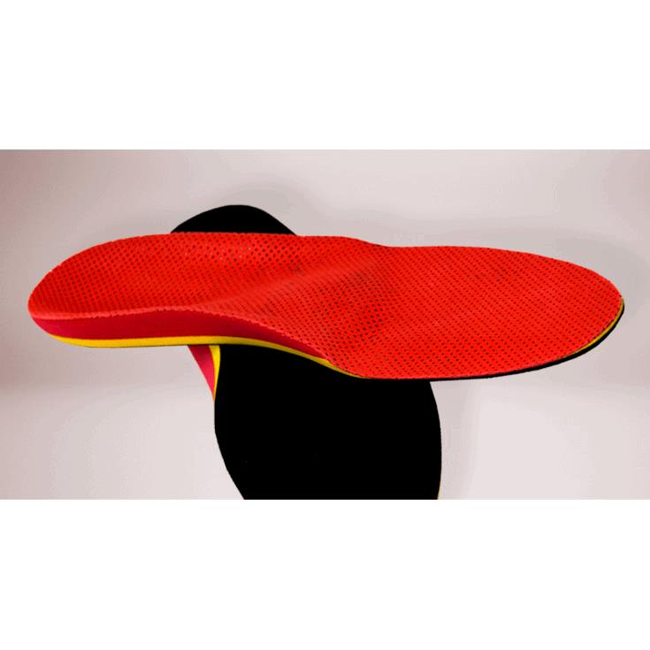 Wkładka wykonana z wysokiej jakości materiału EVA charakteryzuje się trójkomponentową konfiguracją materiałową o twardości: górna warstwa 50 ShA, środkowa warstwa 30 ShA - tłumiąca wstrząsy oraz dolna sztywna warstwa podstawna o specyfikacji 60 ShA.