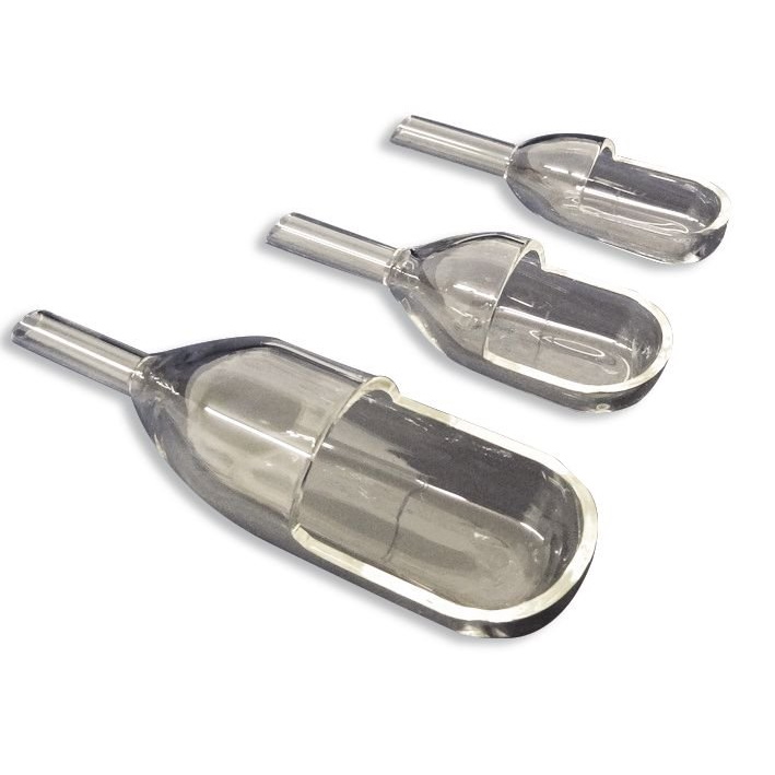 - Proszki mogą być naklejane lub spłukiwane przez rurowy trzon łodzi ważących do naczynia przyjmującego