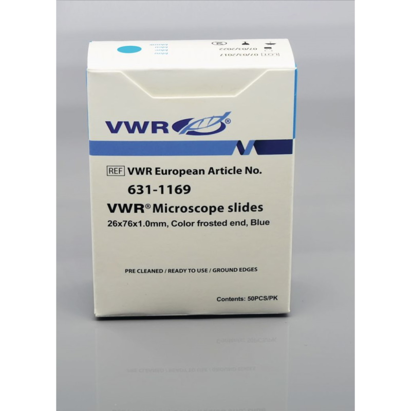 | Kolorowe matowe szkiełka mikroskopowe | 76×25 mm | 1,0 (-0,05/+0,1) mm | Niebieski | Szkło | 2.500 | 631-1169 |