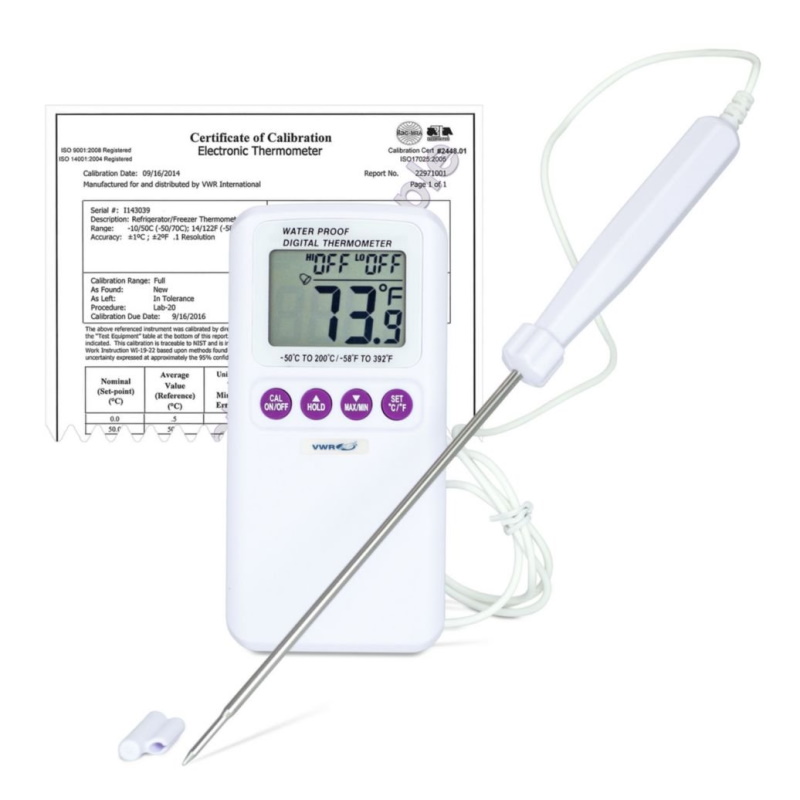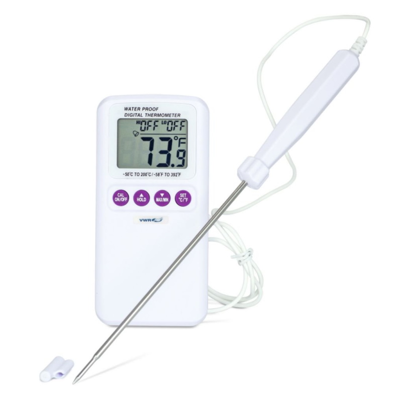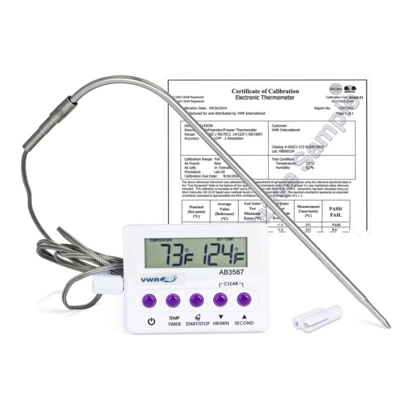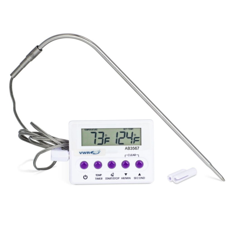 | With 10 event recording with date/time stamp, high/low alarm and max./min., W×H: 65×110 mm | −50…+200 °C | ±1,5; ±0,5 (−20…+100) °C | 0,1 °C | - | - | Removable stainless steel (125 mm) | 3 m | 620-2343 |