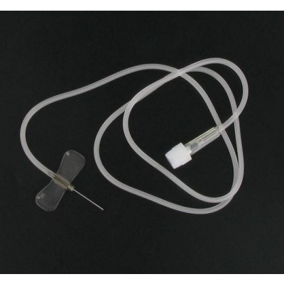 Igła motylek z przewodem. Igła pokryta silikonem.