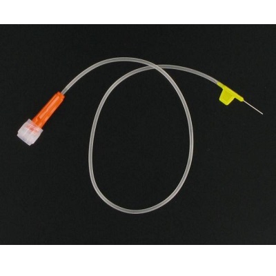 Igła do sialografii. Igła wykonana ze stali. Przewód z PVC o długości 30 cm.