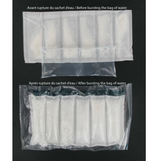 Sterylny zimny kompres do krioterapii, mający na celu działanie przeciwbólowe, przeciwzapalne i przeciwgorączkowe po zabiegu chirurgicznym lub urazie. Jego zdolność do zwężania naczyń zapobiega obrzękowi i posiniaczeniu.