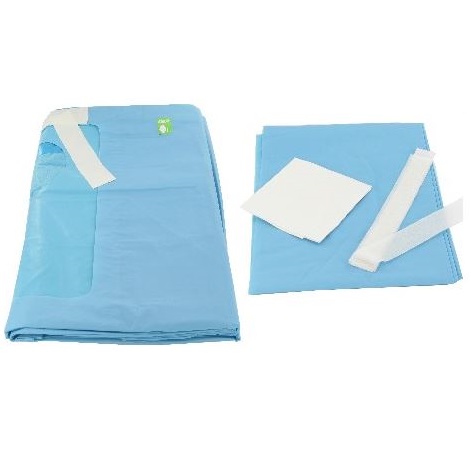 - 1 serweta na ramię 400 x 240 cm z kieszonką na odpady z wylotem i 12 x 10 cm z fenestracją