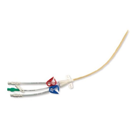 Antybakteryjny cewnik trzykanałowy wykonany z PE do hemodializy. Linia RTG. Substancją czynną stosowaną w technologii Expert jest srebrny preparat AgionTM o działaniu przeciwbakteryjnym, który jest wprowadzany do rury z poliuretanu w cewniku.