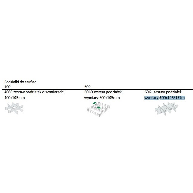 6061 - zestaw podziałek, wymiary: 600x105/157 mm