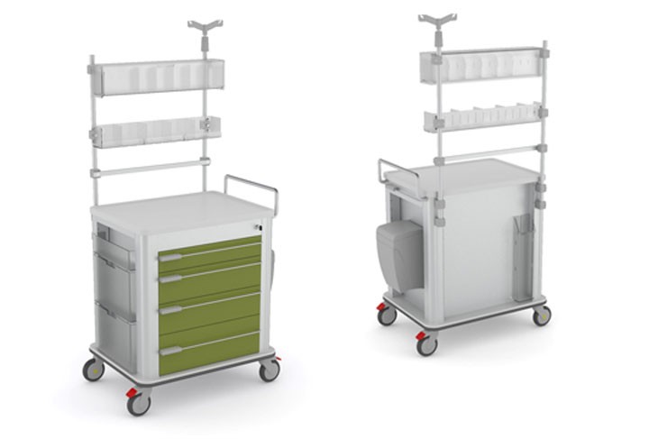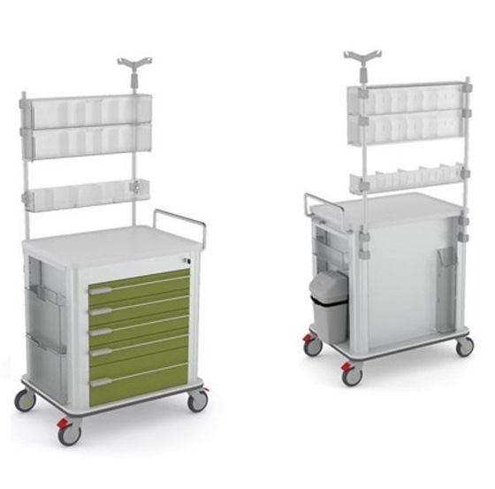 Wózki anestezjologiczne gwarantują łatwy dostęp do materiałów medycznych i leków potrzebnych na oddziałach anestezjologicznych (podstawowe wyposażenie ABC) zapewniając bezpieczeństwo, organizację i dużą powierzchnię roboczą.