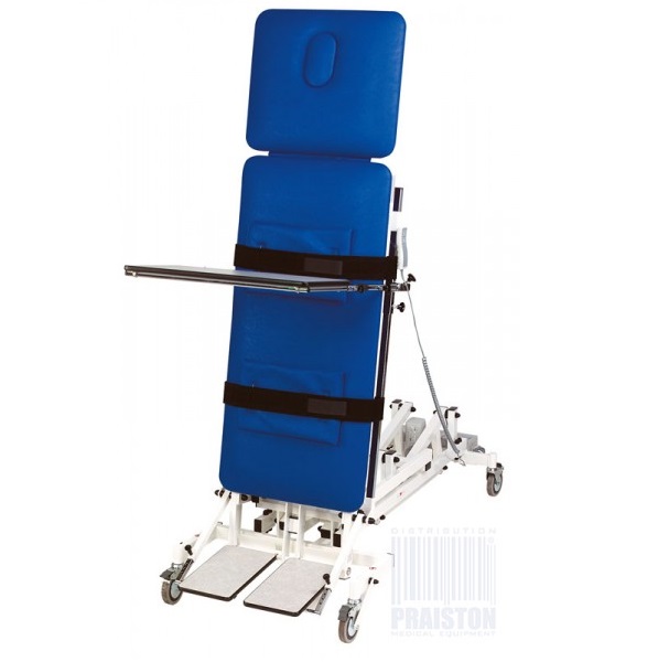 - Model ten wyposażony został w 3 poduszki pasy do przytrzymania pacjenta w czasie regulowania przechylenia stołu ,